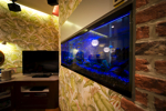 レンガを施した落ち着いた室内に、熱帯魚が泳ぐ癒しの空間。